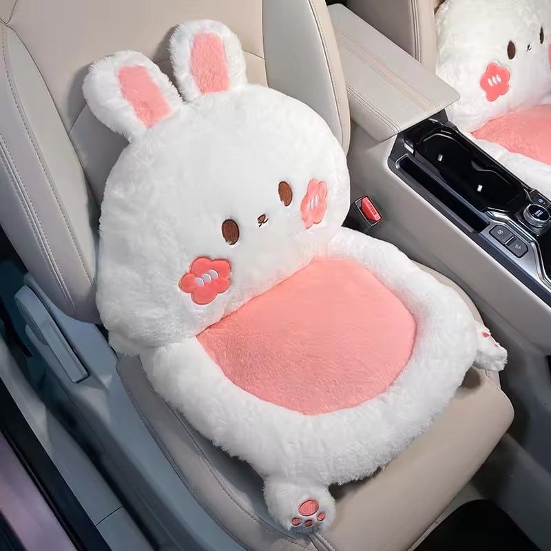 かわいい シート+腰当てクッションセット 動物 うさぎ 車 クッション カーシートクッション 座布団 お尻 運転席 腰 車内インテリア コーディネート キュート おしゃれ 長時間運転 疲れにくい ふわふわ 腰痛対策 ドライブグッズ 女性向け